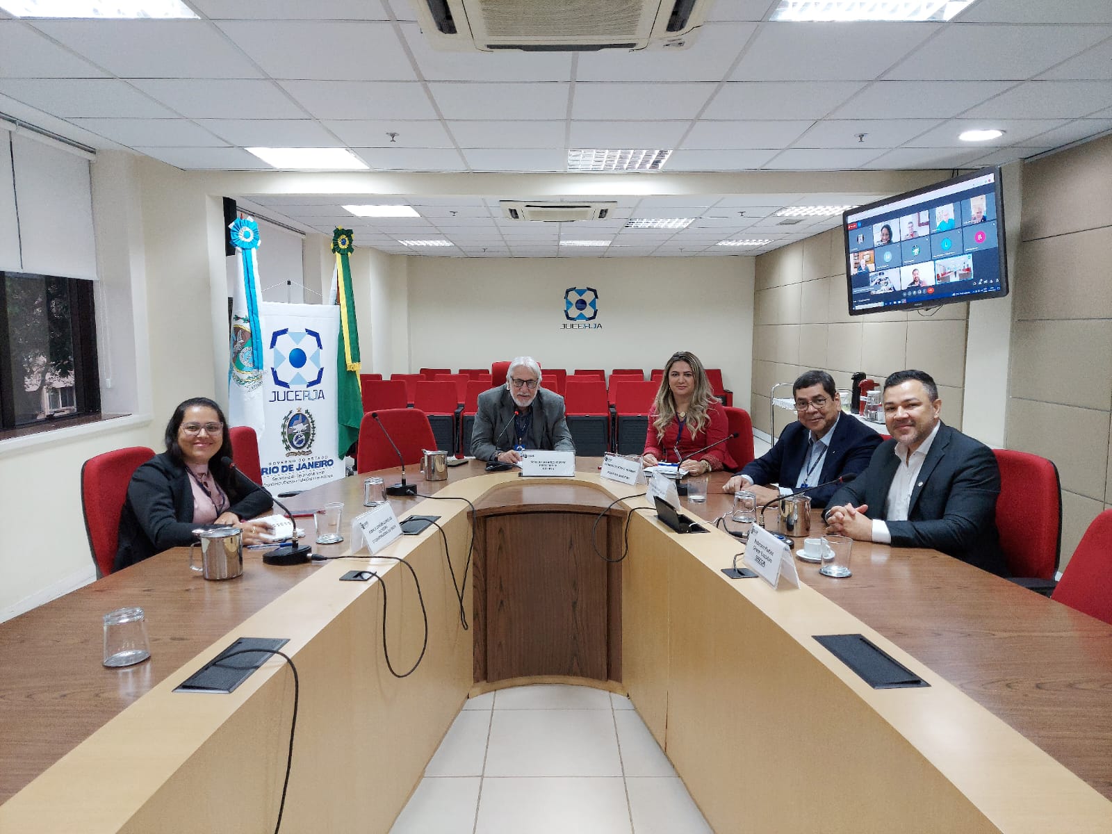A reunião mensal do COGIRE (Comitê Gestor de Integração do Registro Empresarial) aconteceu na última quinta-feira (17/11), de forma semipresencial, e contou com a participação online de Mário Lopes, Secretário de Desenvolvimento Econômico, e Marcelo Malvezzi, Superintendente de Gestão da Secretaria de Desenvolvimento, Trabalho e Turismo do município de Nova Iguaçu, além de David Oliveira Custódio, Gerente de Cadastro Mobiliário do município de Barra Mansa.